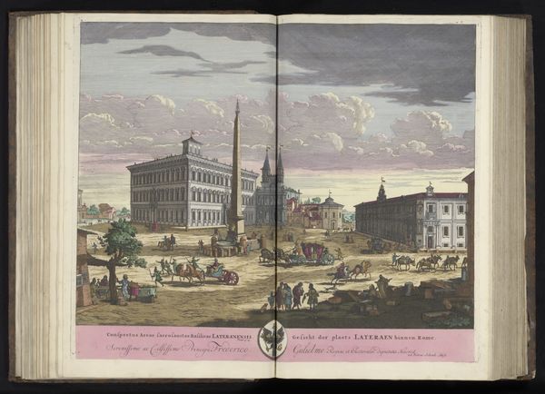 Pieter van den Berge created this print of the Great Square in Cádiz. It invites us to reflect on Spain's global influence during the 17th and 18th centuries. Consider how Cádiz was a crucial port for Spanish trade with the Americas. This print is not just a depiction of a physical space, but also a representation of economic power, colonial ambition, and cross-cultural exchange. The figures populating the square, rendered with a delicate hand, hint at the diverse social fabric of Cádiz. How might the identities and experiences of these individuals—merchants, sailors, and enslaved peoples—intersect within this space? As you observe the orderly architecture and open expanse of the square, consider its role in shaping the collective identity and social interactions of the city's inhabitants. Does this image reinforce a sense of imperial authority, or does it offer a glimpse into the lived experiences of those who navigated the complexities of a colonial society?