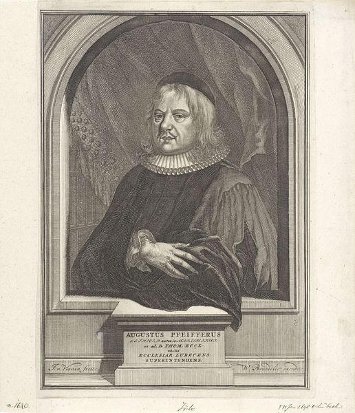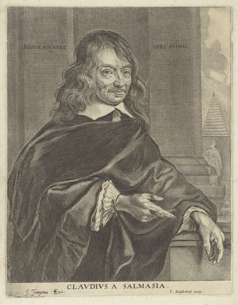 Richard Collin created this portrait of the sculptor Artus Quellinus at the age of 53, rendered with a printmaking technique. During the Dutch Golden Age, portraits weren't just about appearances. They were about presenting one’s social standing and professional identity. Quellinus, seen here with the tools of nature, isn't merely an artist; he's presented as a master craftsman, deeply connected to the materials he molds. The choice of attire, the confident gaze, and the very act of commissioning a portrait were all ways to assert status in a society that was rapidly changing. Amsterdam, a hub of commerce and art, provided a stage for individuals like Quellinus to rise and be recognized. What does it mean to have your likeness captured and disseminated? It speaks to the human desire to leave a mark, to be remembered. Consider how this image, carefully crafted, attempts to freeze a moment in time, to immortalize not just a face, but a legacy.