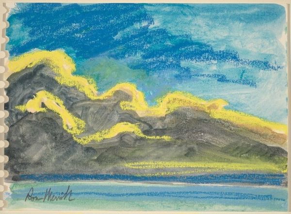 Karl Wiener made this watercolor painting, titled Naturstudie XXV, sometime between 1901 and 1949. The painting is a study in light and atmosphere, capturing a fleeting moment in nature with loose, expressive brushstrokes. It's like he's chasing after the light, trying to pin down something that's always changing. You can almost feel the wetness of the watercolor, the way the colors bleed and blend into each other. Look at how he suggests the forest at the bottom, a dark mass of green that grounds the painting, and then how the light is breaking through the clouds. Wiener really understood how to make the most of this medium. There's a real sense of immediacy, like he was working quickly, responding to what he saw. I'm reminded of Turner, another painter who was obsessed with light and the sublime power of nature. In both artists we see an embrace of ambiguity, a willingness to let the painting be a record of a process, rather than a precise depiction.