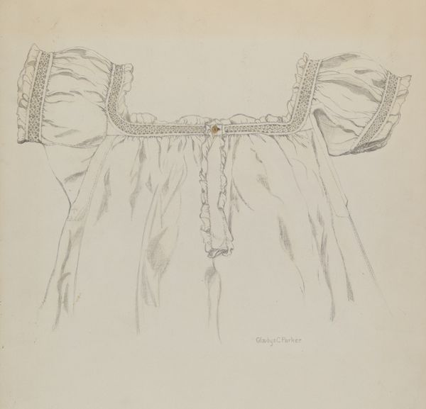 Mary E. Humes painted this infant's shirt with watercolor and graphite. The shirt, trimmed with delicate lace, evokes a sense of innocence. In Western art, white, as seen here, has long been associated with purity and new beginnings. Interestingly, the image of draped cloth itself appears in various guises throughout history. Consider the veils of antiquity or the shrouds of the Renaissance—they all speak to layers of concealment and revelation. The shirt suggests vulnerability and protection. Garments bear the marks of identity. What is concealed and revealed by this infantile garment? What memories do such cloths awaken? The shirt is rendered with an emotional power that speaks to the heart of human experience: the universal need to protect innocence. Like a talisman, the artist captures the power of the cloth to comfort and evoke the eternal cycle of life and memory.