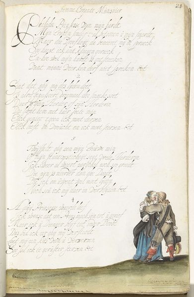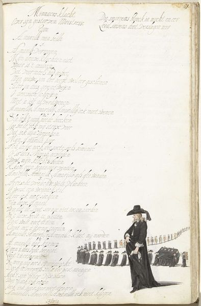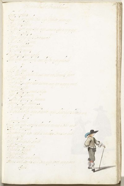 This is a pen and watercolor drawing of a soldier, made by Gesina ter Borch, a Dutch artist, at an unknown date. It appears in a book, alongside a handwritten poem. We can tell from his clothing and the style of his weapon that the soldier is a musketeer, a common type of infantryman in the 17th century. Ter Borch was the daughter of a tax collector and sister to several artists, including Gesina and Harmen. Her family history provided her with a unique view of Dutch society. What does it mean to include a drawing of a soldier in a family album? Was this a generic figure, a kind of wishful thinking, or a portrait of someone specific? It may be impossible to know for sure, but by looking into the history of the Dutch military, the social status of soldiers, and the lives of women artists at this time, we can get a clearer sense of what this image meant to Ter Borch and her family.