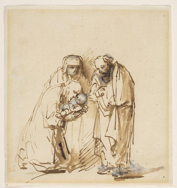 Editor: This is Adrian Ludwig Richter's "Beggar Woman with her Three Children, after Callot." The etching itself feels stark. I'm curious, what story do you think the materials and production tell us? Curator: Well, Richter's choice of etching, a process allowing for multiple reproductions, democratizes Callot's original vision, making it accessible beyond elite circles. This act of replication shifts the focus to the consumption and dissemination of the image of poverty itself. Editor: So, it's less about the artistry, and more about the social implications of replicating and distributing this image of poverty? Curator: Precisely. It forces us to consider the societal gaze upon the working class, and how art functions within a system of observing and consuming hardship. What does it mean to reproduce and, in effect, commodify the image of a beggar woman? Editor: I hadn't thought about it that way. It really highlights how the means of production shapes our understanding. Curator: Exactly. By examining materiality, we can really understand the labor and social context.