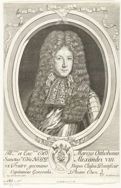 This is Matthijs Pool’s portrait of Johan Willem Friso, Prince of Orange-Nassau, etched into metal. Here, the laurel wreath encircling the prince’s image, a classical symbol of triumph and eternal glory, speaks volumes. We see echoes of this motif throughout art history, from ancient Roman emperors crowned with laurel to Renaissance paintings where saints and heroes are similarly adorned. Yet, its transformation is intriguing. Originally associated with Apollo, the god of reason and creativity, the wreath's significance evolved, becoming intertwined with notions of military victory and imperial power. The very act of encircling a portrait with such potent symbolism suggests a desire to immortalize the subject. The image becomes more than a likeness; it transforms into an emblem of enduring legacy. This echoes humanity's deep-seated need to transcend mortality through symbols and images, a psychological urge as old as art itself. The laurel wreath is not merely a decoration; it's a visual echo of our collective hopes and fears, resurfacing across epochs.