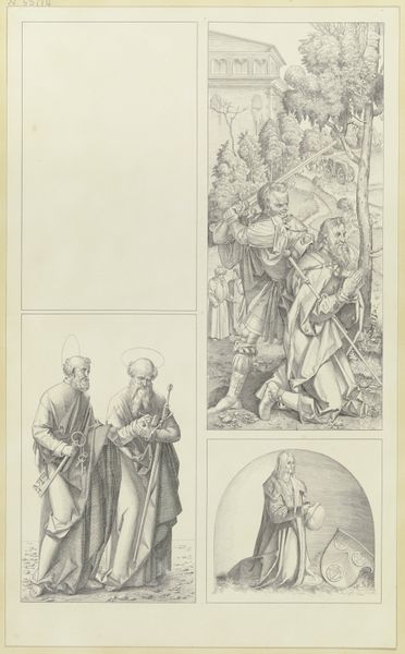Eugen Klimsch rendered this panel of the Heller Altarpiece in graphite, capturing scenes brimming with symbolic weight. The martyrdom of St. Stephen, depicted through his stoning, immediately grabs our attention. Consider the motif of the 'witness,' a figure observing with detached interest. This archetype surfaces across epochs, from ancient Roman depictions of gladiatorial combats to Renaissance portrayals of biblical scenes. Such figures, seemingly passive, embody a collective acceptance, a silent endorsement of unfolding events. The act of kneeling, seen in the lower register, is another powerful gesture, laden with supplication and fealty. In antiquity, it marked submission to deities or rulers; later, it became a staple of Christian iconography. This gesture, deeply embedded in our cultural memory, triggers primal responses of reverence and obedience. The enduring power of these symbols lies in their cyclical nature. They resurface, transformed, in art across the ages, carrying echoes of the past into new contexts, continually shaping our understanding of power, faith, and human destiny.