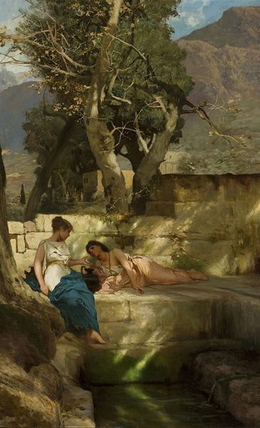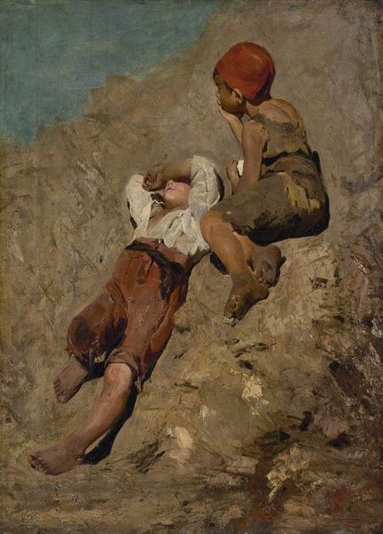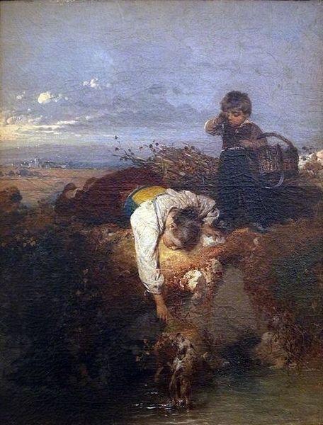 George Harvey's painting, "Far from Home," made with oil on canvas, evokes a sense of displacement and introspection. Harvey skillfully employs the medium of oil paint to create a hazy atmosphere, reflecting the inner turmoil of the figure. Notice how the texture of the paint is subtly manipulated to differentiate the rough terrain from the softness of the figure's garments. The visible brushstrokes and layered application of paint hint at the labor involved in creating such a scene, mirroring the potential hardship and toil experienced by the subject. The loose brushwork and muted color palette contribute to the somber mood, emphasizing the figure’s vulnerability and isolation within the landscape. It reminds us that so-called ‘fine art’ is really just made through many, many applications of skill and work, by artists in the service of an idea. Ultimately, this painting underscores the importance of understanding materials, making, and social context in appreciating the full meaning of an artwork.