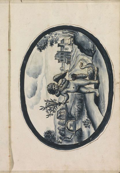 Hendrick van Beaumont created this drawing of a putto with a peacock in a landscape using pen in brown ink and brush in grey and brown ink. During the Renaissance, artists revived the classical image of putti, often associated with Eros or Cupid, to represent innocent love or divine inspiration. The ambiguous gender of the putto allows for diverse interpretations of love, desire, and beauty. The peacock, often associated with vanity and pride, introduces another layer of symbolism. Consider how the putto interacts with the peacock. Is it an embrace, a struggle, or a dance? This interaction subtly critiques human desire and aspiration. The monochromatic tones evoke a sense of timelessness, suggesting a dreamlike state removed from the constraints of everyday life. Beaumont invites us to reflect on the emotional complexity of innocence, desire, and the human pursuit of beauty.