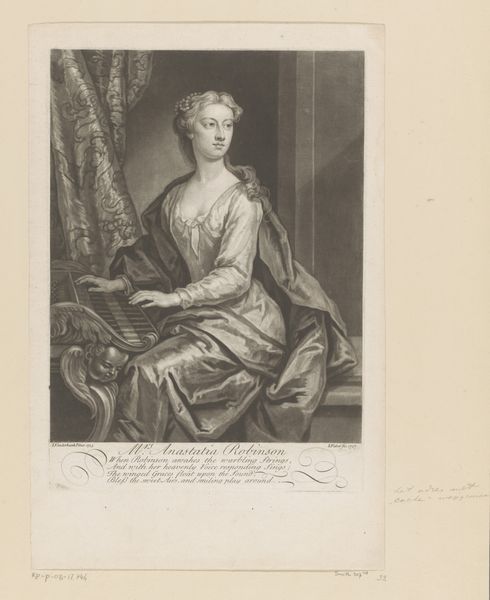 Curator: Let's turn our attention to "Portret van Wilhelmina van Pruisen," an engraving crafted in 1804 by P. Condé. Editor: It’s quite formal, isn't it? My eye immediately goes to the heavy fur stole, it gives an impression of weightiness, of almost being burdened. Curator: Exactly. Think about the political climate; Wilhelmina was a key figure in the Dutch Republic, her marriage to William V solidified Prussian influence, but also made her a target during revolutionary times. This portrait was likely created to project an image of enduring authority and strength. The Neoclassical style adopted here was fashionable and functional for that specific objective. Editor: Yes, the very controlled use of line speaks to that, along with the somewhat flattened space. I am thinking about her position. Even something like the placing of the hands is laden with visual weight. The almost languid placement has a symbolic language rooted in established posture and what they mean. The averted gaze speaks volumes too. Curator: And it is worth asking ourselves how those traditional codes are functioning here to reinforce or subvert expectations for a woman in power during a period of immense social and political upheaval? Her royal status is obvious. What’s less clear is what price was exacted from the powerful woman herself in those tumultuous years. Editor: She holds power in a patriarchal context but does not fully embrace it. Curator: Condé offers a nuanced representation—yes, strength, but perhaps also the weight of responsibility during troubled times, or how limited power she had. This makes me question the representation of female leaders and visibility then and now, what has changed? Editor: Considering how this image might have functioned in its original context brings so much to the viewing experience. Curator: Precisely. And examining its symbolic language gives us insight into Wilhelmina’s time, but it can also offer lessons on the continuities of female leadership.