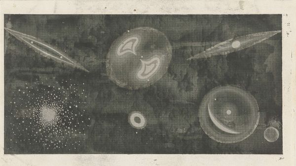 Curator: Here we have James Rosenquist's "Circles of Confusion" from 1965, a drawing executed in graphite. What are your initial thoughts? Editor: It's surprisingly serene, given its potentially critical subject matter. The hazy background makes the repeated GE logos feel almost dreamlike. What's the backstory here? Curator: Rosenquist, a key figure in Pop Art, was very interested in how mass media and consumer culture shaped perception. This piece really captures his fascination with how ubiquitous branding seeps into our collective consciousness. Editor: Yes, the very medium speaks to that—graphite, the material of commercial art and design. It blurs the boundaries between high art and advertisement. And what's with "Circles of Confusion" as a title? Curator: The title likely points to the overwhelming nature of consumerism. By repeating the GE logo – a symbol of American industry – Rosenquist may have been highlighting the dizzying effect of corporate messaging. Editor: And to produce this soft effect by hand, a laborious process, feels significant. It's not simply appropriating a readymade image; he's actively recreating it, imbuing it with his own labor. Curator: Absolutely. By painstakingly drawing these logos, Rosenquist directs our attention to the processes by which we ascribe meaning to everyday objects, specifically thinking about the visual language surrounding General Electric, and its cultural role during this moment in the 1960s. Editor: It also resonates with anxieties about corporate influence, which were growing increasingly widespread during that time period. It suggests a sense of corporate omnipresence. Curator: It is a striking depiction. And I wonder what viewers thought of this piece when they were faced with this image of commercial iconograpy back in the 1960s. Editor: "Circles of Confusion" really makes me consider the enduring power structures shaping art, industry, and our individual roles. A fascinating commentary to reflect on today.