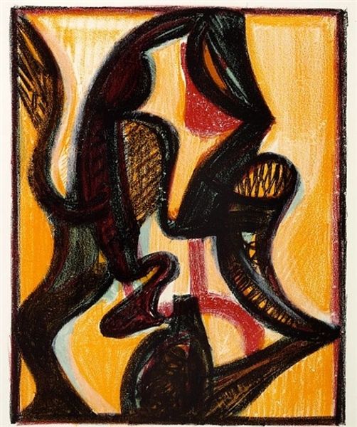David Driskell made 'Black Poet' on a small sheet of paper, we don't know exactly when. It's a mixture of colour and mark-making that feels both worked over and immediate. The surface is alive with scribbled lines and translucent washes of colour. He's built up the image bit by bit, letting the colours mix and mingle. Down below, these marks almost look like standing figures, while up above, a face emerges, framed by foliage. It's like he's trying to bring forth a presence, coaxing it into being through layers of colour and form. Look at how he uses white in the lower section, scumbling it over other colours to create texture and depth. It's not just about representation; it's about the act of painting itself. Driskell's work often draws on African and African American themes, in a similar way to the work of Jacob Lawrence, where the act of painting becomes a way of connecting with history and culture. It’s about keeping the conversation going, one painting at a time.