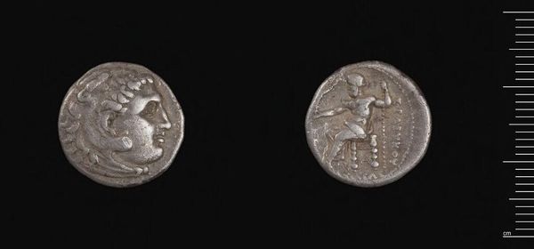 Curator: Here we have a Denarius of M. Herennius M.f. made in Rome. This coin is currently held in the Harvard Art Museums collection. Editor: It's so tiny! But I'm immediately drawn to the figure on the reverse. It almost looks like some kind of winged messenger. Curator: That's a great observation! The imagery carries significant weight. On one side, we see the head of Pietas, a Roman deity embodying duty, religiousness, and familial respect. Editor: And the winged figure? Its stance seems so dynamic, poised between worlds. Curator: Yes, the reverse depicts a figure carrying a cornucopia and reins, symbolizing abundance and control. The moneyer, M. Herennius, likely chose these images to project ideals of Roman virtue and prosperity during a turbulent period. Editor: It's fascinating how such a small object can be a powerful political statement! Curator: Indeed. Examining it highlights how ancient societies used imagery to shape public perception. Editor: I'll definitely look at Roman coins differently from now on! Curator: As will I, considering their cultural and historical impact.