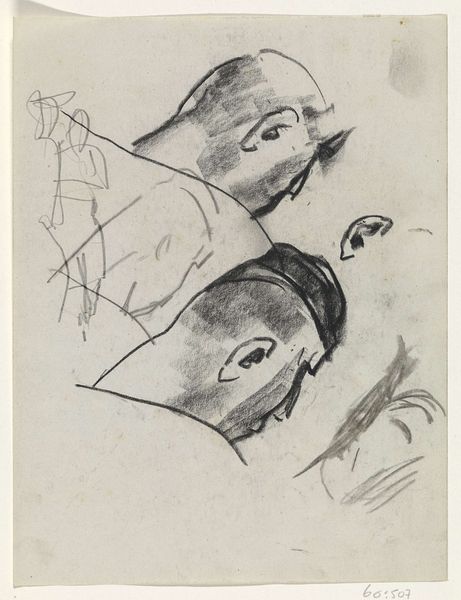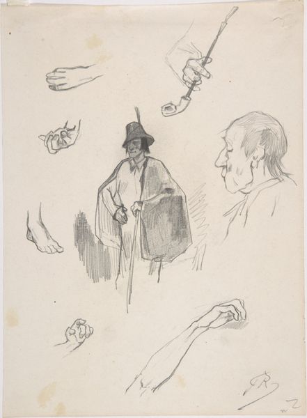 Curator: My first impression of these faces is their stark simplicity. There’s a roughness to them. Editor: This work, "Sketches of Six Heads in Profile (caricatures?) (recto); Sketch of Head and Blank Rectangle (verso)," is a pencil and graphite drawing by Félicien Rops. It resides here at the Metropolitan Museum of Art. Though the exact year is unknown, it’s estimated to be created between 1833 and 1898. Curator: The rapid, almost frenetic, strokes really amplify the caricature aspect. These aren’t idealized portraits; they feel like quick jabs at societal figures. You can tell he's skewering recognizable personalities, mocking specific power structures and perceived arrogance. Editor: Indeed. The nineteenth century saw caricature used extensively for political and social critique, didn’t it? Rops was working at a time of rapid societal change and political upheaval, particularly in Belgium and France. These caricatures are indicative of the increasing role that popular imagery was taking on. There's an element of public discourse embedded into this seemingly private practice of quick sketches. The art-buying public also had less capital. Graphite and pencils were very practical ways for artists to work during that time, as well. Curator: Absolutely. I think it is interesting how they each have unique physiognomies and social commentary on masculinity. Some appear overtly sinister, whilst others border on ridiculous. This interplay is such a telling indicator of his world view, of gender performativity during his time and place, of shifting cultural values, all captured through deceptively simple lines. Editor: Do you think this could speak to the emergence of modern celebrity? With these quickly rendered drawings potentially circulating in the media of that era? Curator: A brilliant observation. Before widespread photography, this might be how many saw representations of notable figures, impacting their perception. Editor: Considering that public reception is part of an artwork's overall legacy, then, this makes the set a testament to Rops' understanding of how imagery can shape perceptions of power, identity, and social commentary in nineteenth-century culture. Curator: Indeed. This has given me an altogether fresh perspective to its intersectional critique of social roles and status. Editor: I see it now. Thank you.
