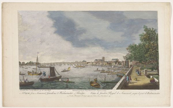 Robert Sayer created this print of the Admiraliteitsmagazijn in Amsterdam, using engraving and etching techniques. The image showcases the bustling activity around the storehouse and docks, reflecting the economic power of the Dutch East India Company in the 18th century. Made in England, the print highlights England's fascination with the Dutch Republic, its main commercial and military competitor. Amsterdam was then one of the world's most important port cities, and it was closely associated with the Dutch East India Company. This Company practically had a monopoly over trade routes to Asia. It possessed enormous economic and political power, and the wealth it accumulated transformed the social and physical landscape of Amsterdam. Historians use sources such as company records, trade statistics, and urban development plans to reveal the complex social and institutional networks that shaped artistic production and the representation of commerce in art.