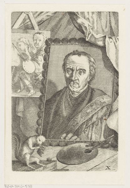 Editor: This engraving, "Portret van Julius Caesar Scaliger," likely made between 1549 and 1584 by an anonymous artist, feels remarkably austere. The cross he’s holding seems both a symbol of power and perhaps also suffering, given its stark presentation. As a historian, what stands out to you in this portrait? Curator: Well, it’s fascinating to consider this image within the context of the Italian Renaissance's humanist revival. Scaliger was a very famous intellectual. So, we need to think about why this image was created. Who was its intended audience? Was it for a book, a private collection, or wider distribution? Editor: So, its social function might tell us something about its creation? The very *idea* of a widely available, reproducible portrait changes things. Curator: Precisely! Engravings democratized imagery. Unlike painted portraits for the elite, engravings like this made knowledge and representation more accessible. But it also raises questions: How accurate is this image? Does it serve a propagandistic function, solidifying Scaliger's legacy or reinforcing particular ideals associated with him? Notice the confident gaze, it aims to suggest importance, but do you see this confidence reflected in its widespread appreciation? Editor: I see what you mean! It prompts a much deeper reflection on image circulation and what that meant in that specific cultural environment. It's not just a likeness; it's an assertion of identity and a bid for lasting influence within intellectual circles of the era. Curator: Exactly! Looking at this now, what began as a portrait reveals a powerful window onto Renaissance society and the rising power of print. Editor: Absolutely. I initially focused on the individual, but understanding its broader historical and social role really changed my perspective. Thanks!