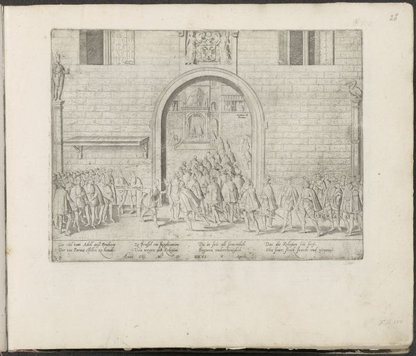 In this engraving by Frans Hogenberg, made in 1578, we witness Matthias taking the oath as governor in Brussels. Note the flags and banners held high; these are not mere decorations but potent symbols of power, allegiance, and identity. The act of bearing flags has ancient roots, echoing through Roman military standards and medieval heraldry. These symbols serve as rallying points, imbuing followers with a sense of collective purpose and belonging. Observe how the central figure of Matthias is framed by these banners, suggesting his symbolic alignment with the values and aspirations they represent. Consider how flags have evolved—from simple emblems of kinship to complex representations of national and political ideologies. Their continued use reflects a deep-seated human need for visual symbols that can encapsulate shared beliefs and aspirations. These emblems evoke a complex interplay of loyalty, authority, and communal identity, engaging viewers on a profound, subconscious level. The cyclical progression of this symbol resurfaces, evolving and taking on new meanings in different historical contexts.