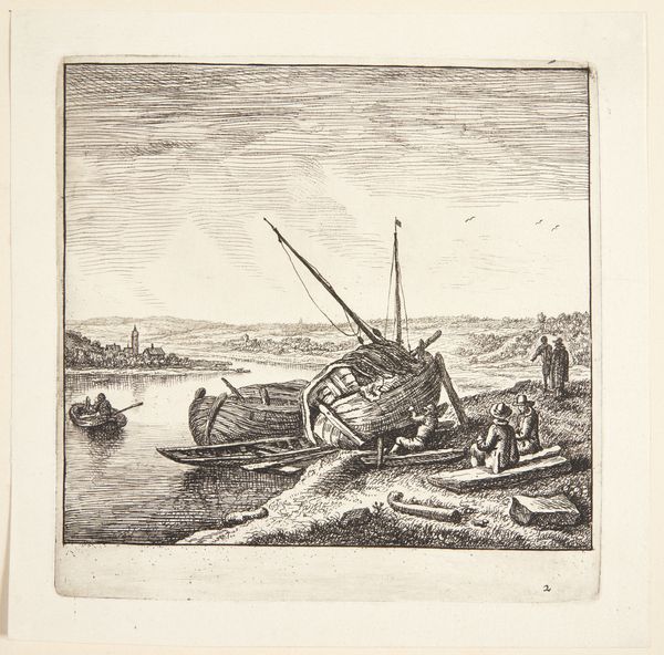 Cornelius Varley made this etching, titled ‘Shored Boats’, sometime between 1781 and 1873. Although the artwork appears to simply depict boats resting on a shore, it offers insights into British maritime culture and the crucial role of boats in trade, transportation, and naval power. Varley made this print during a time of expanding industrialization and urbanization in Britain, when maritime activities were essential to the country's economic and military strength. Consider the visual language used: The shored boats evoke a sense of rest. Yet, the location beside what looks like a fortification also evokes a sense of activity and vigilance. These are visual codes that speak to Britain’s complex relationship with the sea. Careful historical research into trade routes, naval history, and economic data from the period can give us additional insight into how this image would have been interpreted in its own time.