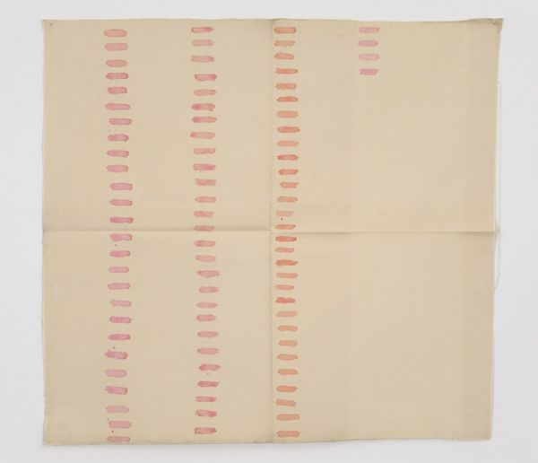 Editor: Here we have Kishio Suga's "A pair of unbeyond," created in 1974. It’s a drawing on paper, featuring a series of horizontal lines, some continuous, others fragmented, with denser clusters on either side of the page. It’s visually very quiet, but something about the breaks in the lines feels unsettling. What's your take on this piece? Curator: Well, this piece needs to be understood in the context of Mono-ha, the Japanese art movement that Suga was a key part of. Mono-ha artists were deeply concerned with the relationships between natural and industrial materials, often placing them in simple arrangements. This drawing, although two-dimensional, echoes that concern. Notice how the fragmented lines disrupt the illusion of a flat picture plane. What effect does that have, do you think? Editor: It makes the viewer conscious of the paper itself as an object. The lines aren't just representations; they’re interacting with the material. Curator: Precisely! Think about the social and political climate of 1970s Japan. There was a lot of questioning of established norms, a turning away from rapid industrialization toward a more elemental understanding of existence. Mono-ha arose directly from these anxieties. The simplicity of Suga's lines, the way they break apart and almost fail to fully form, speaks to a resistance against imposed structures and a search for something more authentic. Consider the title – "A pair of unbeyond". What possibilities do you think Suga hints at with a title like that? Editor: Perhaps, in embracing imperfection, the artist wanted to convey a feeling of limitlessness by un-shackling himself from pre-conceived and imposed social conventions? Curator: Exactly! He seems to push beyond boundaries, urging viewers to reassess their relationship with the world around them. A bold sentiment through subtle means. Editor: This was certainly thought-provoking. I'm left considering how social context shapes even the simplest art. Curator: And how art, in turn, can shape our understanding of society. There is definitely much to ponder about our relationship with both material and the immaterial structures.