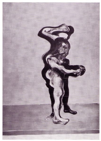 Curator: Sandro Chia's "Running Boy with Strange Fingers" presents us with a rather enigmatic figure set against what seems to be a star-filled night sky. Editor: My first impression is one of slight unease, almost gothic; the stark contrasts and the boy's contorted fingers definitely create a sense of the uncanny. Curator: Chia's work often draws on classical mythology and symbolism. The running boy could represent Icarus, perhaps, reaching for something unattainable. Editor: Or perhaps it speaks to something more contemporary—a commentary on the distorted images of youth and body that pervade our media landscape and their political implications? Curator: It's intriguing how the artist uses the night sky—a motif frequently associated with dreams and the subconscious—to frame the boy's actions and amplify the sense of mystery. It evokes a timeless feeling, almost as if the boy’s predicament is part of the human condition. Editor: True, but the title specifically mentions the fingers. It is too easy to ignore the direct references, and I think those strange fingers might be a key to unlocking a more pointed political critique, related to modern notions of ideal youth. Curator: Perhaps Chia aimed for both then, using the symbol of the running boy and its context to speak of desire and political disquiet at once. Editor: It's a compelling ambiguity, giving viewers room to connect with the piece on multiple levels.