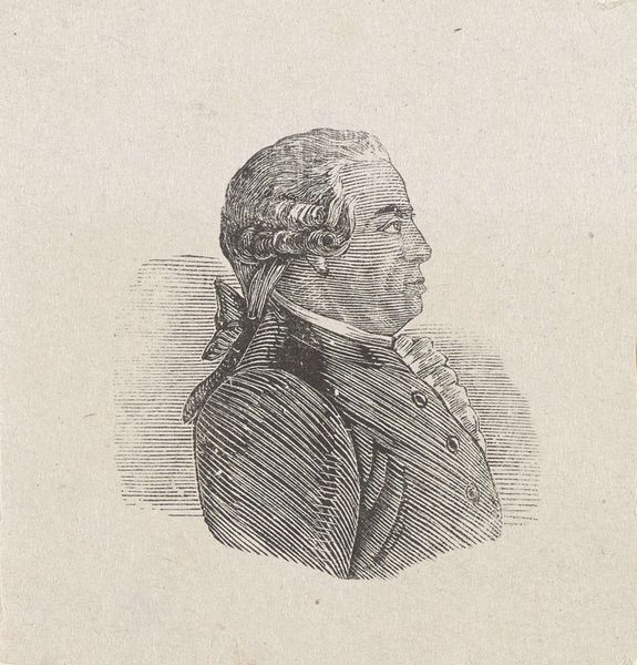 Editor: This is *Portret van Jan Kamphuysen*, an engraving from 1814 by Jacob Ernst Marcus, currently held at the Rijksmuseum. The precision of the line work and the somewhat caricatured features give it an interesting visual tension. What do you see when you look at this piece? Curator: Focusing on the formal elements, the first thing that strikes me is the economy of line. The artist has used variations in thickness and density of the etched lines to define form and create shadow. Notice, for instance, how the parallel lines suggesting the texture of the hat contrast with the more varied lines defining the face, giving it a sense of depth. The figure’s wrapping—how does this strike you in relationship to the top hat? Editor: The lines create depth like you said, especially in contrast. His shawl gives a soft, almost classical feel, especially paired with the formality of his other clothing. Do you see a specific philosophy in the engraving? Curator: Indeed. Given its creation date and aesthetic qualities, we can understand the work’s alignment with Neoclassicism—observing the symmetry, order, and controlled lines reminiscent of classical sculpture. But this symmetry and line control only highlights the hyperrealism. What kind of impression does this portrait make, overall? Editor: The somewhat cartoonish nature of the figure lends the piece levity despite the stiffness of the posture, almost as though it pokes fun at portraiture and classicism itself. Curator: Exactly. Perhaps, then, this interplay between formality and exaggeration serves as an implicit critique of societal norms and portrait conventions. It encourages the viewer to ponder what lies beneath the surface. Editor: This conversation really illuminated how studying the technical construction informs how the portrait operates and affects the viewer! Thanks! Curator: You're welcome! It's in that nexus of form, intent, and observation that real understanding emerges.