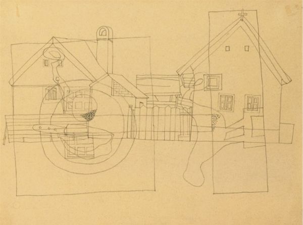 Vajda Lajos created “Houses with Still Life and Bird” in 1936, using a meticulous graphic style. The picture plane is activated with structures of houses and natural forms combined to create an image of disorienting visual complexity. Lines intersect and overlap, forming a network of shapes that challenge conventional perspective. The composition is divided into quadrants, each containing architectural elements, abstracted objects and natural forms. Vajda’s integration of graphic components creates tension between representation and abstraction. Note how the superimposition of forms disrupts any unified reading of space, and the buildings, trees, and objects appear fragmented. In this way Vajda destabilizes established meanings, inviting the viewer to decode the underlying visual language of the artwork. Consider the tension between the linear structure and the texture of the etching, which functions not just aesthetically but also as part of a larger cultural and philosophical discourse. This approach reflects broader artistic concerns with how we perceive and understand the world around us.