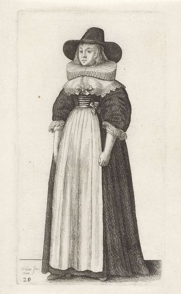 This etching of a young woman from Zurich was created by Wenceslaus Hollar in 1649. The image captures her distinctive dress, with its high collar, decorative belt and elaborate hat. Hollar made this print in the Netherlands, part of a series of costume studies representing women from across Europe. These images catered to the interests of a growing urban merchant class, for whom printed images were increasingly available and affordable. But far from being neutral documents, such images often reinforced stereotypes and prejudices. What does it mean, for example, to represent this woman as a ‘virgin’? How does her clothing speak to the changing social and economic conditions in Zurich at this time? To understand these issues, we might turn to historical sources, such as clothing inventories, personal letters, and travelogues. Through such research, we can better understand the complex relationship between art, identity, and social change.