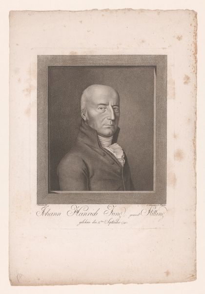 Editor: This is a rather refined engraving titled "Portret van Christoph Martin Wieland," created by Johann Friedrich Bause in 1797. The texture looks meticulous. How would you describe the visual structure of this print? Curator: Observe how Bause has employed linear precision to delineate form, favouring a certain restraint that aligns it with the prevailing Neoclassical aesthetic. Notice, furthermore, the composition’s geometry, with the subject contained within a rectangle, and the figure itself presented in a precise, balanced pose. What effect do you think this has on the viewer? Editor: It gives the portrait a formal, almost stoic quality. I notice how the fine lines create gradations of light and shadow, emphasizing the textures of the face and clothing. Is the engraver playing with the formal qualities of the print to reveal character? Curator: Precisely. Consider how the engraver's technique enhances the overall composition. The meticulousness speaks to an emphasis on clarity and order. The medium—engraving—becomes a conduit for presenting Wieland not merely as a likeness but as a figure embodying rationality. Doesn't the linearity almost sculpt the subject? Editor: Yes, I see what you mean. It’s not just about representation but also about idealization through form and structure. Curator: And in that idealization, we begin to understand not just the man, but also the values the artist wished to convey through his considered manipulation of line, light, and composition. Editor: Thank you. I am leaving this conversation with a stronger understanding of how form dictates meaning.