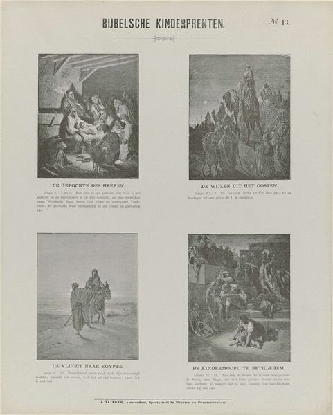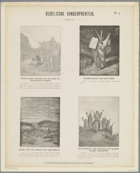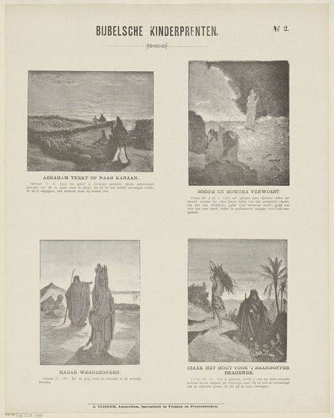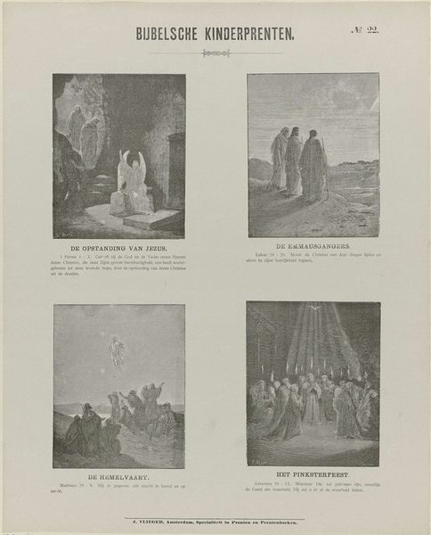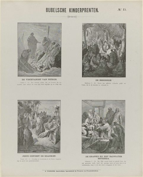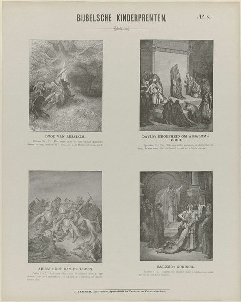 Héliodore Joseph Pisan created this set of biblical images using wood engraving, a process that demands both artistic skill and intense labor. Wood engraving, unlike woodcut, uses the end grain of the wood block, allowing for finer detail and a greater range of tonal values. The artist would have used specialized tools called gravers or burins to carve the image into the block. Each cut removes material, creating the white areas of the print. The remaining raised areas receive ink, which is then transferred to paper under pressure in a printing press. This was a time-consuming process, requiring patience and precision. The very nature of printmaking allowed for mass production, which tied in to wider social issues of labor and consumption. These inexpensive prints would have been widely distributed, disseminating religious narratives to a broad audience. In understanding this artwork, it’s important to recognize the significance of its materiality, the skilled making involved, and its context within a rapidly industrializing society.