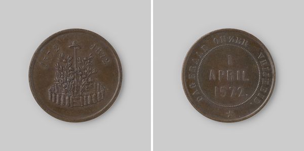 This commemorative medal was made by Johan Philip Menger in 1872, likely of bronze, to celebrate the third centenary of the Capture of Brielle. Look closely, and you'll see that the material itself speaks volumes. The flat, circular form resulted from the metal being struck between two dies. The bronze, a common material for medals, lends a sense of durability and historical weight, intended to last for generations. The medal features symbols and inscriptions related to the historical event. The design has been achieved through a process of relief engraving. The precision of the die-making speaks to skilled craftsmanship and a system of production geared towards commemorating important historical and political events. The relative ease with which such multiples can be made speaks to the dynamics of mass production and consumption in the 19th century. Let's appreciate the value of this small object, understanding its production and the wider context in which it was created, which challenges traditional distinctions between fine art and craft.