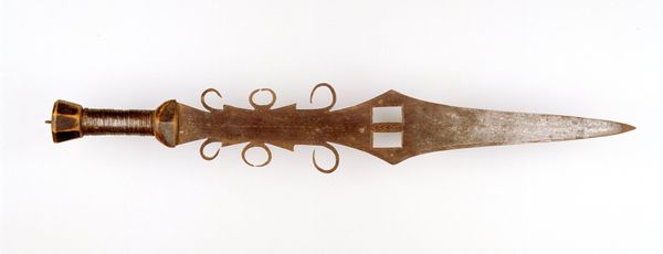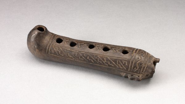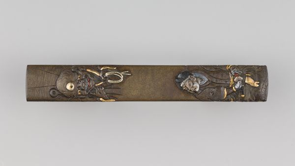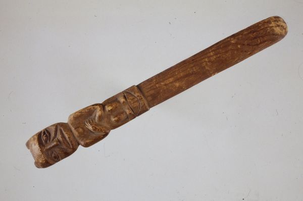 Curator: I am drawn to the object’s aged, earthy character and surface texture. It gives me a sense of this item's history. Editor: Indeed. Let’s turn our attention to this object, presently held in the collection of the Rijksmuseum. This is an example of an artwork named "Heft van een mes," crafted by an anonymous artist sometime between 1590 and 1596. Curator: A knife handle… with such incredible carving! It feels intensely personal; it gives the object real heart and soul, like holding a small wooden creature. Editor: Thinking materially, this handle, carved from wood, isn't simply a functional element. Notice how the creation process emphasizes not only utility but the carving’s cultural and aesthetic meaning. The craftsman's work transforms ordinary matter into something of both significance and symbolic value. Curator: And just imagine the hand that held it, carving with intent. There's a real sense of story woven into every line, a quiet narrative of use and care that it carries after hundreds of years. Editor: And note how this functional object allows a glimpse into historical processes of production and perhaps also of trade in terms of timber. We are invited to question the dynamics between functionality and artistry; perhaps questioning what value we attribute to skilled artisanship. Curator: I think that's a perfect question for any contemporary viewers of this seemingly small treasure of ingenuity and creativity, one that asks to consider our own perspectives. Editor: It has definitely enriched my view! Considering it as an example of the socio-cultural processes of consumption of material and resources through craft definitely leaves me thinking about historical values!
