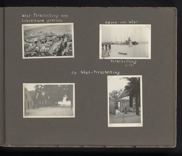 This photographic artwork by Berti Hoppe presents four views of Terschelling with the Brandaris lighthouse, capturing the island and its iconic structure from various perspectives. The silver gelatin prints are arranged on a dark grey page, each image a fragment of the island’s identity. Look at the way Hoppe has approached the composition, with the lighthouse as a central motif. Each photograph required careful labor, from setting up the camera to developing the prints in the darkroom. The tonal range achieved in the silver gelatin process gives each scene a tactile quality. The varying distances and angles suggest a journey. Photography democratized image-making, making it more accessible than traditional painting or sculpture, yet it retained a craft element in the darkroom processes. By presenting these views in a constructed album page, Hoppe elevates the documentary nature of photography to an artistic composition. We can think of the work as a commentary on place, memory, and the industrialization of sight.