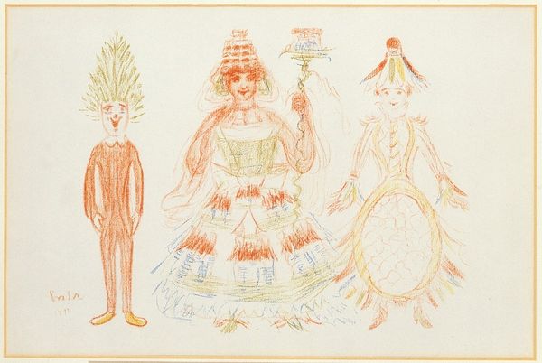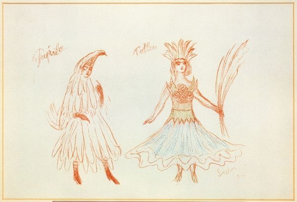 James Ensor drew 'Hélio' in 1911, and I can tell it’s made with pencil, maybe even a little bit of crayon. Look at the repeated marks that create the feathery costume. It’s like he’s building up layers of light. What strikes me is how the whole image shimmers with an inner glow. The figure is defined by delicate lines that emphasize the texture of the costume and the character’s radiating energy. There’s something both playful and serious in the way Ensor renders the face, a hint of melancholy beneath the bright rays of the sun. Ensor’s interest in light and theatricality reminds me of some of the costume designs by Oskar Schlemmer for the Bauhaus. Both artists create works that are full of imagination, inviting us to consider art as a space of transformation and boundless experimentation.