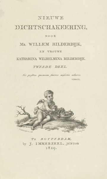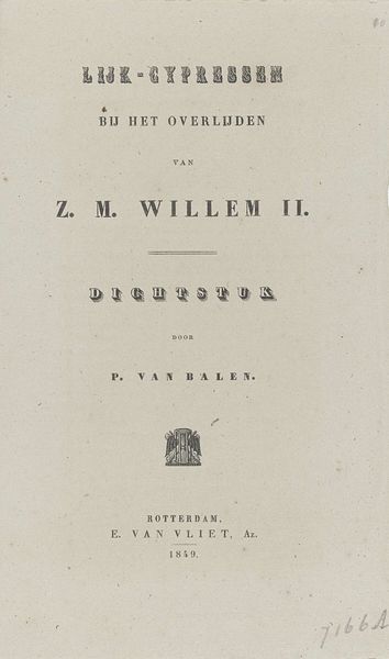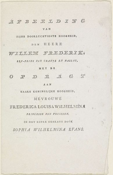 Editor: This engraving from 1838, "Vijf-en-twintig-jarig Gedenkstuk der Regering van Willem I," by Rombertus Julianus van Arum, feels very formal, almost like a proclamation. The neoclassical border and prominent typography are quite striking. What do you make of this work? Curator: Ah, yes, a commemoration! I find myself wondering about the "Avondbode"—this evening paper—and its role in crafting public image. Look closely: this isn't just celebrating Willem I, it's a performance *of* celebration, designed for public consumption, much like the King’s carefully constructed persona. The artist is basically saying, “Look! Even the press adores him!” Clever, isn’t it, how the imagery amplifies that message through the royal crown and ornate framing? It’s like a stage, really, wouldn’t you agree? Editor: Definitely! It’s like the newspaper is putting on a play. What's interesting to me is how much power the press seems to be wielding here. Curator: Precisely! Think about it: newspapers shaping perception, curating history, back then *and* now. I almost see a self-aware wink—the newspaper reminding everyone of its influence in solidifying Willem I's image, but with a playful, neoclassical charm! Perhaps we are both actors, even you and I... Editor: I hadn't considered that level of self-awareness. I was caught up in the regal aspects. Now, seeing that wink… it makes the piece much more complex, and dare I say it, more interesting? Curator: Precisely! Art often dances between image and reality, reflection and intention. Next time you're leafing through the news, maybe ask yourself, who’s directing the play?