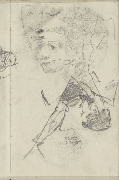 Curator: Here we have George Hendrik Breitner's 1893 pencil drawing, "Dienstmeid, op de rug gezien," or "Maidservant, Seen From the Back." It resides in the Rijksmuseum. Editor: It's incredibly intimate; the lines are sparse and gestural, and it really conveys a sense of the subject's private world. There's a vulnerability here, I think. Curator: Breitner was fascinated by everyday life, particularly that of working-class women in Amsterdam. We can see the immediacy in his use of a simple pencil sketch. He made many of these informal drawings in his sketchbooks, focusing on the details of posture and clothing to reflect a certain type of labor and production. Editor: Absolutely, and it speaks volumes about class and gender dynamics of the period. This wasn't simply about capturing a likeness; it's about a system. The downcast gaze and hidden face signify a societal structure that relegates women in domestic service to invisibility. We aren't meant to see *her,* just the work she performs. Curator: Indeed. Breitner's approach to his materials—pencil on paper, with the sketch lines exposed—underscores the value of raw process over idealized form. This brings visibility to artistic labor itself, reflecting how modern production increasingly defined experience. Editor: But it also opens a dialogue about the power dynamics inherent in the act of looking, doesn't it? Breitner, a male artist, observing and sketching a female servant – there’s a certain gaze, an assertion of control implicit within this intimate observation that warrants acknowledging. It also opens space for the reinterpretation by different gaze. Curator: I agree that there are complicated, even uneasy dynamics at play when considering class and perspective here. The accessibility and low cost of these sketches enabled an efficient study of working bodies as new objects of study and the potential to consume these depictions widely. Editor: Well, that reading does leave one contemplating the very nature of representation and its entanglement with social stratification, doesn't it? Thanks for helping me consider how everyday labour in seen with a nuanced approach through class, race and gender. Curator: Likewise. The way this work draws us into the lived reality of an overlooked figure of the time makes this modest drawing exceptionally rich, doesn’t it?