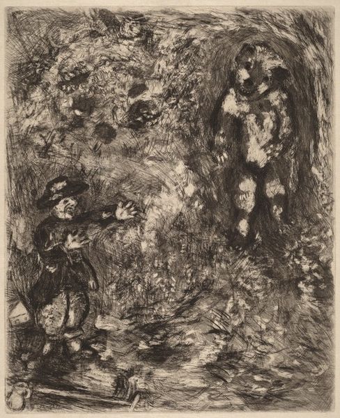 Editor: Here we have "Child Among the Rocks," an engraving by the Dalziel Brothers after Arthur Boyd Houghton. It has such a fairytale-like quality to it. What strikes you most about its composition? Curator: The meticulous use of line is remarkable. Observe how Houghton, through the engravers, creates depth and texture solely through varying densities and orientations of hatching and cross-hatching. Notice, too, the stark contrast between the light falling on the child and the enveloping darkness. Editor: It’s amazing how much detail they achieved! Is there a structural purpose to that contrast, do you think? Curator: Precisely. It serves to isolate the figure, emphasizing her presence within this somewhat ominous, undefined space. The figure-ground relationship is masterfully manipulated, drawing our eye directly to the child. Editor: So it’s not just decorative, but integral to the overall meaning. I learned a lot from this! Curator: Indeed. Form and content are inseparable.