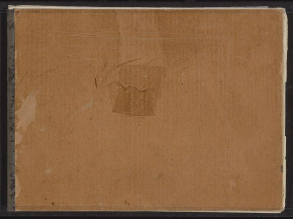 Curator: Looking at this sketchbook, with its lovely warm paper tone, I can't help but imagine Willem Witsen pulling it out to quickly capture a fleeting moment in the world around him. Editor: I like this. There’s something almost haunted about it, don't you think? Like it contains lost worlds and memories pressed between the pages. Curator: Precisely. Made between approximately 1897 and 1910, this particular 'Schetsboek met 19 bladen,' as it’s called, provides tangible evidence of his creative process. Each page, made from paper and often worked in watercolor, carries the weight of Witsen’s impressions. Editor: The visible stains and smudges on the cover become part of the artwork, reflecting the hands and the places it has visited. Each imperfection tells a story about its handling and existence. It reminds me how art objects carry with them these material histories. Curator: Indeed, the very imperfections you've highlighted suggest a close relationship with labor and use; the evidence of the hand directly participating in creating the artwork becomes an intrinsic part of its character. The drawings weren't just made, they were handled, carried, experienced. Editor: Considering that sketchbooks are traditionally more intimate and private than larger, exhibited works, it suggests that art is also about that intimacy with the creative, material self, you know? It's almost as if this piece gives you permission to acknowledge and play with these more quiet aspects. Curator: Absolutely. I believe Witsen's impressionistic leanings freed him from conventional representational requirements; here, the sketchbook becomes a site where artistic expression merges seamlessly with the mundane actions involved in making art. The materiality isn’t subservient but central. Editor: So much depth to be found even on the cover of the sketchbook. Thank you. I appreciate how the piece transforms with each interaction. Curator: Agreed; it shows us the beautiful capacity of art, when considered materially and conceptually, to evoke, engage, and evolve continuously.