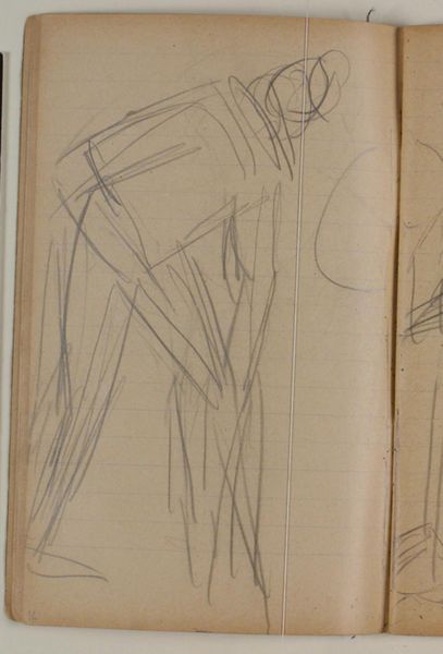 Isaac Israels sketched this ‘Lopende Vrouw’ or ‘Running Woman’ with graphite on lined paper. The artist's choice of humble materials is telling, and gives us a glimpse into the artist’s process. Israels’ quick lines capture a sense of movement, a fleeting moment in time, and the texture of the paper shows through, adding depth and immediacy to the sketch. The deliberate roughness emphasizes the act of drawing itself. Rather than concealing the labor involved, Israels puts it front and center. Consider the social context: paper became increasingly accessible and affordable, as did graphite pencils, enabling artists to experiment freely. Israels' sketch represents a shift towards a more democratic art world, where the creative process is valued as much as the finished product. It invites us to consider the labor, materials, and social forces that shape the creation of art, blurring the boundaries between high art and everyday life.
