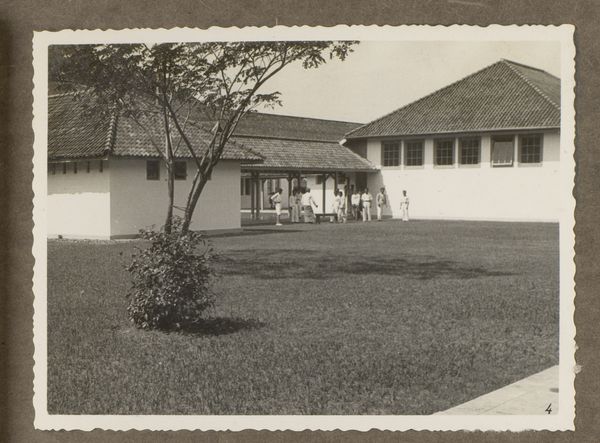 This photograph, showing the exterior of fermenting sheds of the Deli Company in Pandjang Djati, Sumatra, uses a muted palette of grayscale tones, creating a somewhat somber yet serene atmosphere. The composition emphasizes horizontal lines with the repetitive structures, and the subtle variations in tone suggest a meticulous and thoughtful process. I'm intrigued by the marks in the foreground, where the grass meets the earth. There’s a certain roughness there that contrasts with the clean lines of the architecture. This contrast brings attention to the textures and the physical nature of the world depicted, a space where industry meets nature. It reminds me of some of Bernd and Hilla Becher’s typologies, though with a less formal, almost vernacular quality. Both artists cataloged industrial structures, but here the scene is softer, more organic, suggesting an embrace of the imperfect and the temporal. Art is always a conversation, isn't it? A constant remix of ideas and forms.