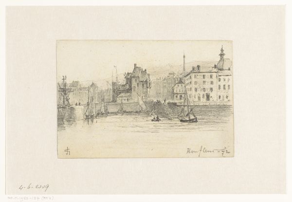 Carel Nicolaas Storm van 's-Gravesande captured this view of Koblenz on the Moselle in a pencil drawing on May 5, 1891. Van 's-Gravesande, a Dutch artist born in the mid-19th century, lived in a world where industrialization and urbanization were rapidly changing the landscape. Here, he presents a tranquil scene of the city of Koblenz. The choice to depict a city not with bustling streets, but with its architecture viewed across a body of water evokes a sense of distance. The detailed rendering of the buildings and the bridge contrasts with the quickly sketched logs in the foreground, creating a layered effect that almost feels like looking back in time. Consider the artist's choice to capture this view. What does it mean to frame a city in this way, emphasizing its relationship to the natural world? How might this image reflect the artist's own sense of identity and place within a changing world?