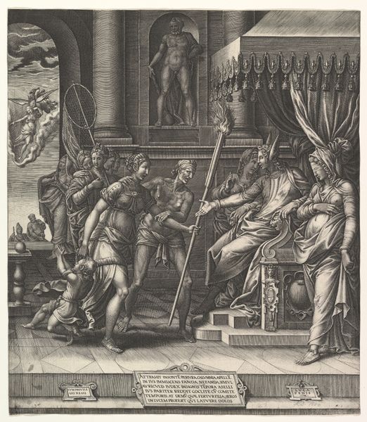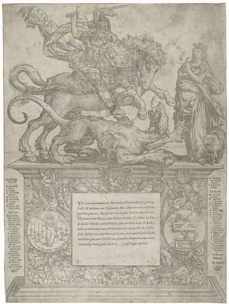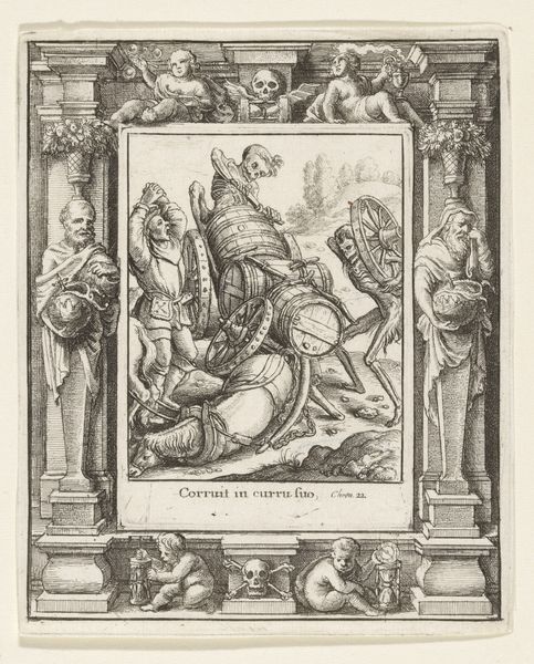 This print, created by Monogrammist RDZ, depicts the public execution of Aron Abrams, an Amsterdam usurer and fraudster. The scene is rife with symbolism reflecting the social and cultural anxieties of the time. Justice, a female figure, presides from above. She embodies the era's rigid moral code, and the expectation that societal roles and norms, especially those of commerce and finance, should be upheld. Her presence suggests that divine law supports the earthly punishment being meted out. Yet, we must also ask, who gets to dispense Justice, and for whose benefit? The print offers a glimpse into the era's views on wealth, morality, and social order, and it reflects a society grappling with the consequences of unchecked greed and deception. But it also exposes something about the fraught relationships between justice, spectacle, and the darker impulses of public sentiment.