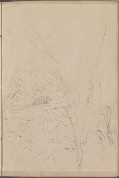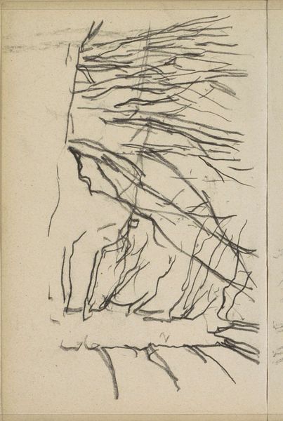 This graphite drawing, "Studie, mogelijk van een gebouw in een landschap," was created by George Hendrik Breitner, an artist who lived through profound shifts in Dutch society. Breitner came of age in a period of rapid urbanization and industrialization. He bore witness to the stark realities of urban life and the social inequalities that accompanied modernization. Breitner's work often reflects these experiences, focusing on the lives of ordinary people, particularly the working class. There's an emphasis on the fleeting, transient moments of daily life. He sought to capture the raw, unvarnished truth of his surroundings. This piece is a sketch. It could be preparation for a painting, or a record of place or time. Breitner's connection to the Impressionist and Post-Impressionist movements helped him develop a style that was both realistic and expressive. His work offers an opportunity to reflect on the changing social fabric of the Netherlands during his lifetime.