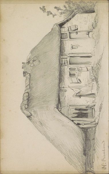 Curator: This is Cornelis Vreedenburgh’s “Ophaalbrug over de Amstel te Amsterdam,” dating from between 1890 and 1946. It’s a pencil drawing, currently residing here at the Rijksmuseum. Editor: My first thought? Fleeting. Like catching a glimpse of something beautiful from a moving tram. It has that raw, unfiltered quality of a sketch made in haste. Curator: Indeed. The medium itself, pencil, contributes to this sense of immediacy and impermanence. The quick, light strokes serve a preliminary function. One sees a clear attempt to capture the essential forms—the bridge, the water, the buildings. Note the compositional structure; the verticality, strengthened through the repetition of lines denoting architectural elements. Editor: And there’s something about that sketchy quality that lets my imagination fill in the blanks. I can almost hear the gentle lapping of water against the pilings, smell the dampness of the canal. Do you think this was just a study, a preparatory sketch for a larger work? Curator: It very well could be. One cannot discount the inherent value in observing these primary marks, particularly their relation to subsequent drawings or completed painting iterations. Vreedenburgh’s use of hatching and cross-hatching indicates an attention to the effects of light and shadow within a restricted tonal register. The relative lack of detail forces one to reconsider basic structural elements. Editor: For me, the beauty is in the imperfection, in the vulnerability of the sketch. The wobbly lines hint at the artist’s hand, their hesitation, or perhaps their excitement as they rushed to capture this scene. You can feel that energy. Curator: Perhaps we see the allure of process laid bare. Before us the dialectical development of an idea as form. Editor: In the end, it’s more than just lines on paper. It’s a captured moment, a feeling, an essence of Amsterdam—rendered so beautifully raw. Curator: And there is, assuredly, the enduring power of observation, regardless of artistic finish. It offers, as such, its own type of immutable completeness.