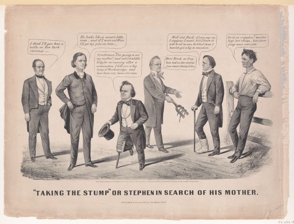 John L. Magee created this lithograph, “A Little Game of Bagatelle,” to satirize the political climate during the American Civil War. The print illustrates a game of bagatelle, a billiards-like game, where political figures like Abraham Lincoln and George McClellan are players. The artist uses caricature to emphasize the perceived strengths and weaknesses of each figure. Note how Lincoln, labeled "Old Abe the Rail Splitter," is depicted making a shot, while McClellan, "Little Mac the Gunboat General," is portrayed as small and less capable. A Black man serving refreshments is in the background, a reminder of the slavery question central to the conflict. The bagatelle table is labeled "The Union Board," and we see figures like Jefferson Davis and other Confederate leaders as animals, like rats, attempting to undermine the game. The print captures the intense political divisions of the time, reflecting anxieties about leadership, race, and the future of the nation. The game itself becomes a metaphor for the fragile state of the Union.