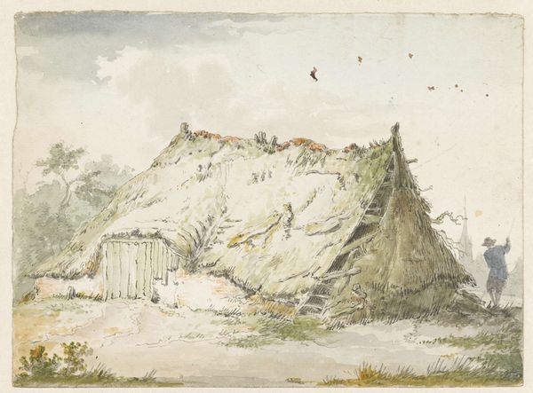 John Linnell created this watercolour painting, Quarries near Ironbridge. The landscape unfolds with layered hills and valleys in earthy tones. Note the dominance of horizontal lines, contrasted by the more angled slopes of the mounds of earth. The colours are muted, almost monochromatic, with touches of green providing subtle relief. This restrained palette evokes a mood of quiet contemplation, drawing us into the scene's serene stillness. Linnell was interested in capturing the essence of the English countryside. Here he uses a formal structure to suggest the impact of industry on the land. The layering of washes creates depth, while the composition, almost a series of planes, evokes the structural analysis we find in geological surveys. The painting invites us to reflect on the relationship between nature and the industrial landscape. It questions how we perceive and categorize our environment, balancing beauty and the stark reality of human intervention.