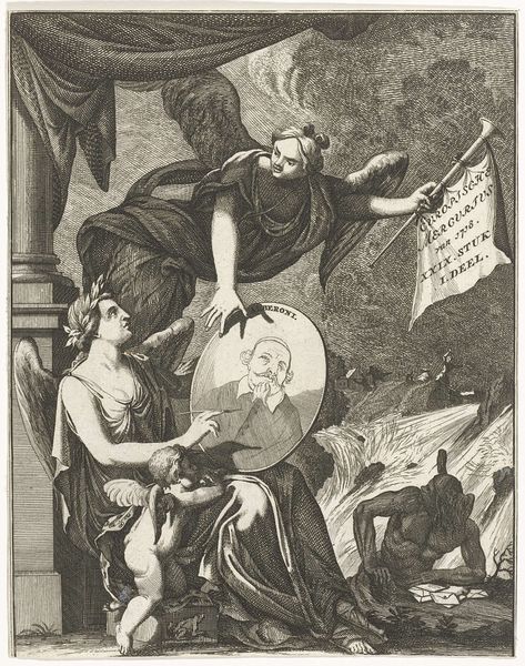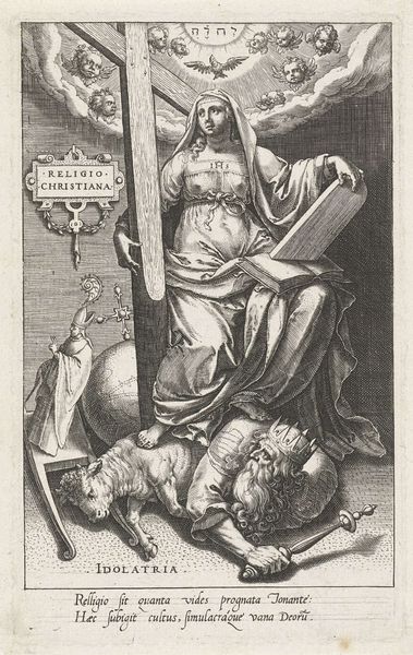 Editor: Here we have "Engel met gesels bij de geselpaal," an engraving by Abraham Hogenberg, created sometime between 1608 and 1658. It's a dramatic scene; a central figure seems to be presenting instruments of torture. What elements stand out to you? Curator: What strikes me is the explicit depiction of the instruments – the scourge, the crown of thorns. These weren't merely symbols of suffering, but physical tools of a brutal, material process. How do we interpret this artistic choice to emphasize the instruments of torture so vividly? Editor: Perhaps the artist wanted to highlight the physical suffering? Curator: Precisely! Consider the labor involved in creating these objects. Someone had to gather the thorns, meticulously weave them into a crown. The scourges would have been constructed with specific materials designed for maximum impact. What does it signify to present them with such care and detail? Editor: So, by focusing on the making of the torture implements, the artist directs our attention to the social context of its production and use? It seems like they are pushing beyond religious art by examining how the physical implements amplify the story. Curator: Exactly! We're forced to confront not only the suffering, but the active role that human hands played in creating that suffering. Also, note the pen-ink sketch. Is it the final form, or could it be part of a larger sequence for reproducibility? The ability to circulate imagery and create shared beliefs points at social context. Editor: That makes me think about the engraving process itself, how many impressions could be made, and who might have consumed those images. Curator: And where? Prints circulated as commodities, reaching audiences far removed from the elite art world. Editor: It’s incredible to consider how analyzing materials and their making helps uncover so many layers within a single image. Thanks! Curator: My pleasure. Thinking about the print this way highlights the connection between production, object and circulation, offering a nuanced historical view.