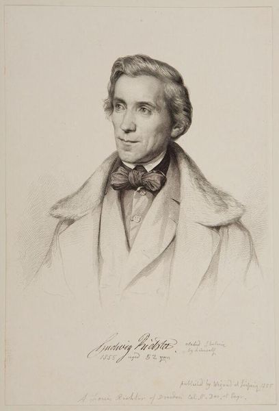 Jan Cornelis van Rossum made this pencil drawing, "Portret van een man, gezeten bij een tafel," in the Netherlands, likely around the mid-19th century. It is a depiction of a seated man, rendered with a focus on detailed shading and texture. The sitter's attire and composed posture tells us something about the social and economic status of the sitter and perhaps that of the artist as well. The attention to detail suggests a commission, and the relatively formal pose reflects the sitter's desire to project an image of respectability. Van Rossum was active in a period of significant social change in the Netherlands, including the rise of a wealthy middle class. As historians, we would want to investigate the institutions that supported artists like Van Rossum. We might consult archival records, exhibition catalogs, and period publications to understand the social networks in which Van Rossum operated. Understanding the social context helps us interpret the portrait not merely as an individual likeness but as a product of its time, reflecting the values and aspirations of Dutch society.