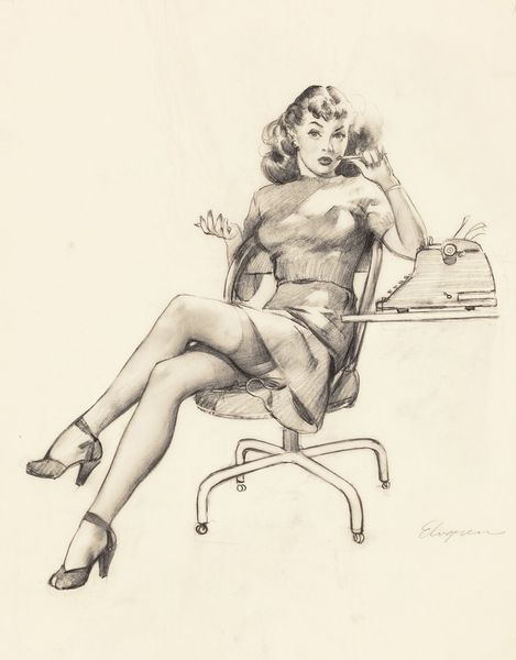 Gil Elvgren made this painting, Low Down Feelings, sometime in the mid twentieth century, using oil on canvas. I love the way Elvgren's brush strokes seem to disappear, creating a smooth, almost hyper-real surface. Look at how the light catches the curve of her thigh or the delicate folds in her dress. It's all about illusion, a kind of magic trick with paint. The way Elvgren uses color is so interesting. The bright yellow of the chair pops against the muted tones of her skin and the soft pink of her dress. It's a playful contrast that adds to the overall sense of fun and flirtation. There's a certain knowingness in her eyes, a sense that she's in on the joke. I'm reminded of other artists who played with similar themes of femininity and desire, like John Willie, but Elvgren's approach is somehow sweeter, more innocent. In the end, it's up to us to decide what this painting means, and that's part of what makes it so compelling.