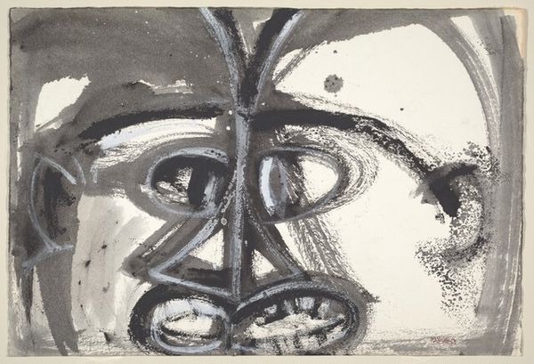 Curator: Looking at this compelling work, “Fantasie: profielkop naar rechts in een witte rechthoek, omgeven door zwart (rechtsonder is het zwart gewassen)", an ink drawing created in 1920 by Samuel Jessurun de Mesquita, currently held at the Rijksmuseum…my first impression is its rather stark, almost ghostly quality. Editor: There's a certain disquiet, isn't there? The high contrast and simplified form give it a chilling edge. I wonder what contexts might be informative here. Mesquita was Jewish, born in Amsterdam… I think that identity can lend new understanding here. The dark outlining of the form, confining the head. The washes in the bottom-right feel evocative of the traumas of displacement and loss that so many people suffered and indeed that his own family would be victims of. Curator: True, but on a purely compositional level, the stark black frame focuses the gaze. The artist used ink to build a simple contrast. Editor: But that's part of its power! To disconnect it from the reality, say, of a painted portrait frees the representation up to reflect symbolic qualities of trauma and mourning in the artist’s lived world. Even in that confined pictorial space we still get a sense of the subject’s existence being inextricably defined by its circumstances. Curator: Yet, by stripping away detail, don't you think it becomes somewhat universal? I see a meditation on mortality and impermanence that transcends the individual and historical context. It is like he's reducing the person to a fleeting idea, hence "Fantasie." Editor: Absolutely. And it's within that tension between the particular and universal, the specific tragedy of Jewish persecution, the identity and that sense of human vulnerability, that the drawing's richness truly lies. Curator: So, whether read formally or critically, Mesquita’s image definitely invites deep consideration. Editor: Exactly. By considering it in intersection with biographical events, this work gains a striking dimension, allowing us to contemplate the complexities of history in profound ways.