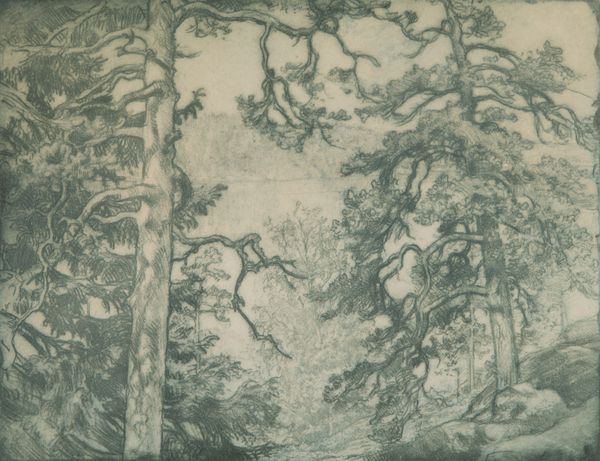 Editor: So this is "Bergrivier tussen bomen," created sometime between 1848 and 1909, attributed to Johannes Arnoldus Boland, executed in ink on paper, and it strikes me as incredibly dense and layered, especially for a landscape drawing. What formal qualities stand out to you? Curator: Indeed. The density you observe arises from Boland’s meticulous application of line and value. Observe how the composition privileges a claustrophobic depth. The interplay between light and dark, achieved solely through variations in ink density, constructs a captivating recession into the wooded space. Note how the artist limits your gaze using strategic placement of trees to manipulate depth of field and visual flow. Editor: It almost feels… suffocating? Curator: That’s an astute reading of affect, considering the means by which it is produced. The lines function as both representational tools, describing tree bark and water texture, but also as pure graphic marks whose cumulative effect produces a mood, an environment for interpretation. Ask yourself what the graphic intensity might evoke. Is it only a forest scene, or perhaps something more metaphorical? Editor: Perhaps, through this construction of such a dense and perhaps forbidding forest, he's using it to signify something else entirely, something about the self. I hadn't thought about it that way before. Thanks for opening my eyes to this new perspective! Curator: It is rewarding to explore how formal elements impact meaning. Art's essence resides not only in the subject but how the subject becomes through considered treatment of the visual.
