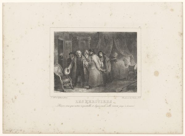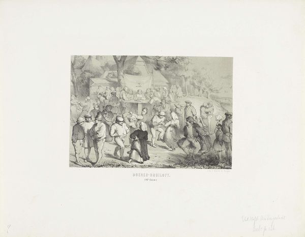Charles Rochussen created this print, "Geketende mannen," sometime in the 19th century. It's a scene that pulls us into a complex narrative about punishment, community, and perhaps, empathy. Rochussen, who lived through a period of significant social change in the Netherlands, presents us with a stark image of two chained men at the center of a crowd. This work invites us to consider the socio-political dimensions of justice and public spectacle. Who are these men, and what societal norms have they transgressed to warrant such public humiliation? The act of being chained speaks to a loss of autonomy, a stripping away of identity, and a subjugation to communal judgement. The varied reactions of the onlookers, from the indifference to expressions of concern, add layers to the story, suggesting a society grappling with its own moral code. Rochussen doesn’t offer a simple condemnation or approval, but rather, holds up a mirror to society, urging it to reflect on its own values. How do we balance justice with compassion? How do we confront the 'other' within our community?