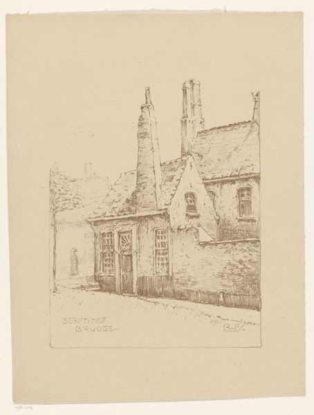 Curator: Look at this etching from 1860, "Ancienne habitation à Bourges, dite "La Maison du Musicien"" or "An Old House at Bourges, Sometimes Called the 'Musician's House'" by Charles Meryon. He’s got a real knack for architectural details, wouldn't you say? Editor: It's arresting, definitely draws you in. But what hits me first is this sense of precariousness, almost a melancholic imbalance. The buildings lean in, the light is murky... it feels like a memory fading, or a stage set about to collapse. Curator: Well, Meryon did have a turbulent life and channeled much of that into his art. He really became known for capturing a very particular Paris undergoing transformations and other urban subjects like this. He almost seems to memorialize places, like this “Old House.” There is always some historical building, or social context he includes. It seems to always hold a place in his pieces. Editor: That fragility I felt, it makes sense now knowing Meryon was etching a past disappearing before his eyes. Look how he teases detail from the grime of the printing. The lines are so delicate and almost brittle that creates an overwhelming sense of being aged and ready to come undone, not exactly collapse, more like crumble. Curator: Exactly! There’s a Romantic's nostalgia at play, and a Realist's documentation of change. He uses ink and print techniques in a such a way that really brings out the cityscape with very expressive light and darks. I always see the smoke plumes rising into the sky, as a symbol for progress barreling forward and perhaps not so subtly consuming this historic home, in this case this print embodies a powerful symbol of transition and preservation. Editor: Makes you wonder what stories that “Musician’s House” holds. Who lived there, what music filled those rooms? What did they all see? Now the old house is represented here with a musician. The scene could almost inspire some contemporary poem lamenting a lost heritage. Curator: Right! Meryon offers more than a depiction; he gives us a historical portal, a way to witness Bourges, at this pivotal moment. Editor: So well said. Meryon does invite a pause. In the end the print compels you to reflect. A wonderful blend of documentation and the dream of remembrance.