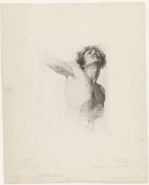 This lithograph of a nude woman looking down was created by Hyacinthe Aubry-Lecomte. It captures the essence of classical beauty through its delicate rendering and serene depiction of the female form. The downward gaze is a motif laden with meaning. Recall Botticelli's Venus, similarly demure, her eyes cast downward as she embodies both purity and sensuality. This gesture echoes through art history. It resurfaces in countless images of saints, nymphs, and goddesses, each time carrying echoes of humility, contemplation, and a sense of inner reflection. Perhaps this image speaks to our collective unconscious, evoking memories of innocence, vulnerability, and the eternal feminine. It highlights the cyclical nature of symbols and their ability to evoke powerful emotions across generations.